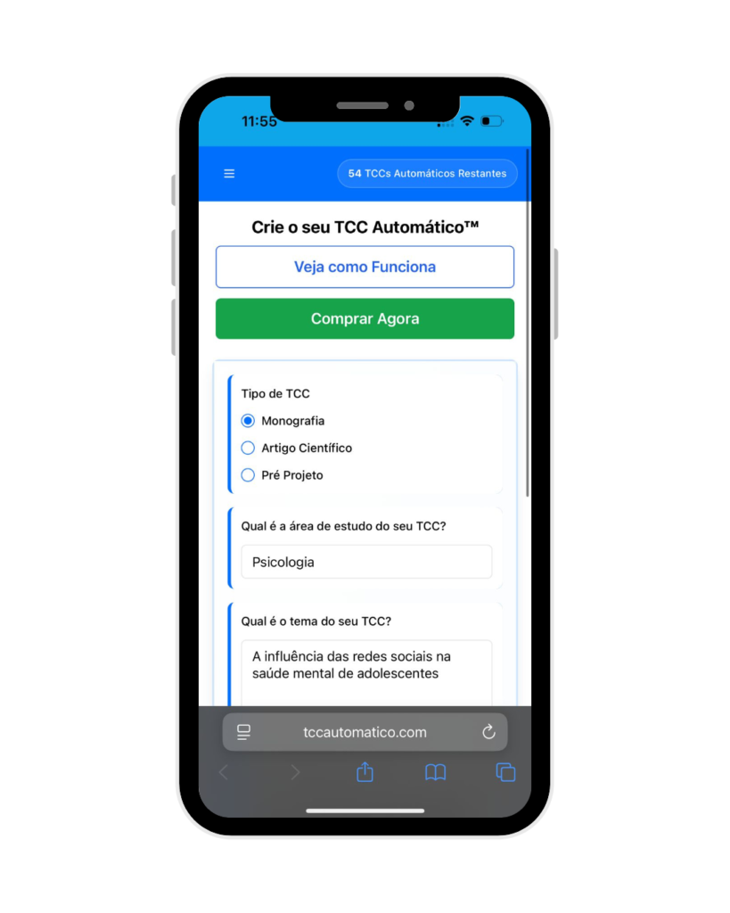 O TCC Automático™ trata-se de um roteiro gerado por nossa inteligência artificial para auxiliar alunos em seus trabalhos universitários.